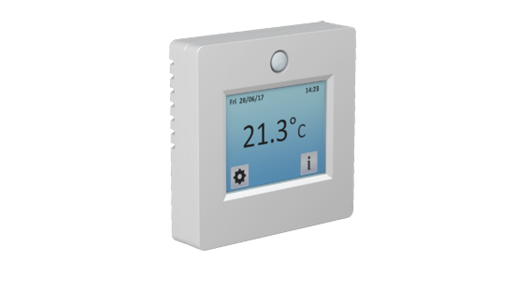s dotykovým displejem, volitelnou barvou pozadí, výměnným krytem (spodní i vrchní) s různou barevnou kombinací a ovládání je v češtině. Termostat má týdenní program, 4 přednastavené, 3 uživatelské a až 10 teplotních změn denně. Termostat snímá jak prostor tak i podlahu, nebo obě teploty současně. Má i režim dovolená, ruční ovládání, protimrazová ochrana a úplné vypnutí. Počítá provozní hodiny, funkce otevřené okno a má senzor přítomnosti osob. Spínací kontakt 16 A, krytí IP 21, podlahová sonda o délce kabelu 3 m je součástí balení. Při vypnutí el. proudu zálohuje nastavený program v termostatu velkokapacitní kondenzátor.