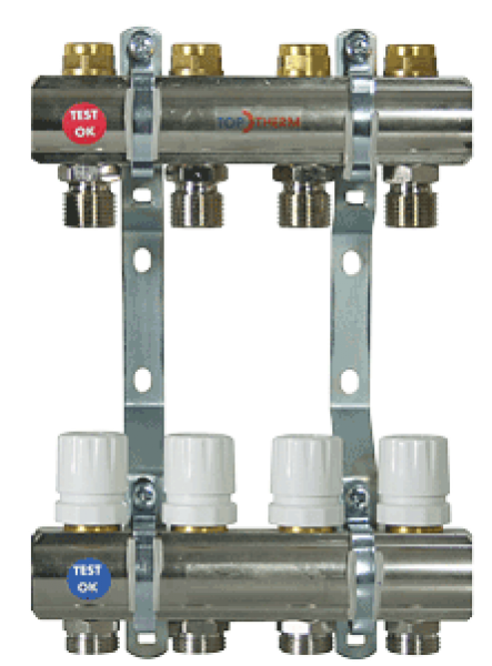 Rozdělovače pro podlahové vytápění slouží k připojení trubek, regulaci a rozvodu vodního podlahového vytápění. Jedná se vlastně o křižovatku, která dělí přivedenou vodu do jednotlivých okruhů pro podlahové topení. Tyto okruhy by měli být do 100 bm, aby docházelo k rovnoměrnému natápění okruhů. Nejčastěji se umísťuji do skříní, které jsou vsazeny do zdi nebo přímo na zeď. Je možno dodat rozdělovače s průtokoměry nebo bez průtokoměrů. Dále je možno zvolit rozdělovač podle počtu okruhů a to 2-12 okruhů na jednom rozdělovači. Vycházející hadice podlahového topení se zalívají do anhydritové lité podlahy.